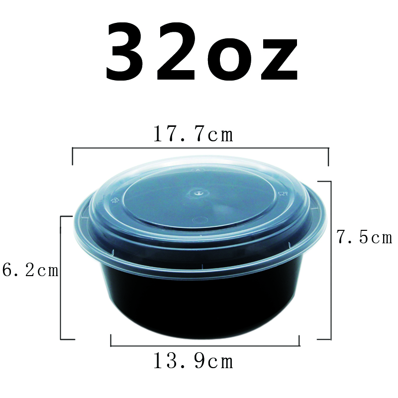 32 oz. Black Round PP Food Microwavable Container with Lid