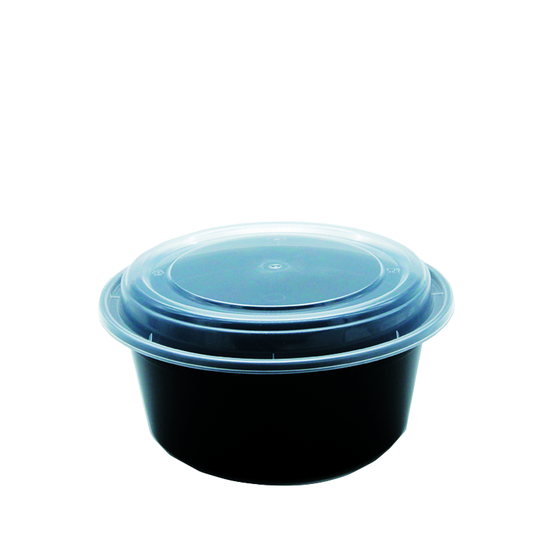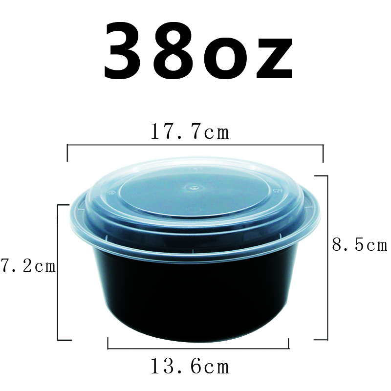 38 oz. Black Round PP Food Microwavable Container with Lid