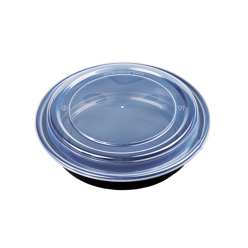 48 oz. Black Round PP Food Microwavable Container with Lid